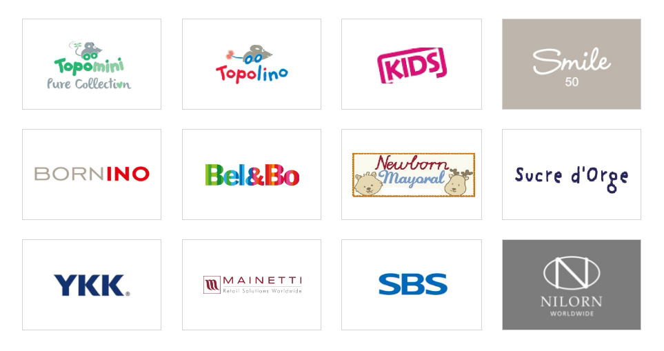 Our products are exported to dozens of countries and regions in Europe and America, and we have become strategic partners with foreign customers and many brands of clothing, such as Ernsting's Family (EF), Metro (Metro), KIK, Baby-Walz, DM, TAKKO, ALDI from Germany.Migros from Switzerland;Siplec, Okaidi, Sergent-Major in France;Mamas & Papas, Babies R Us UK, Dunnes;Mayoral, El Corte Ingles, Spain;Carackl Barrer and K-Mart in the United States;ColruytGroup in Belgium;ICA in Sweden.Famous suppliers at home and abroad include YKK, Mainetti, SBS, Nilorn and other brands.